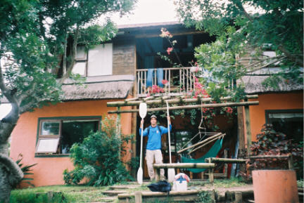 Le backpack se trouve dans un coin encore plus paumé, que Port St Johns, si si c'est possible. Un village en face, coincé entre deux collines, au pied de la mer. Le temps de se poser dans un dortoir, et vite on se change pour la session du soir. On a eu le temps de retomber un peu de l'espace, seulement plusieurs heures après avoir tiré UNE latte sur cette énorme cigarette magique de la mort qui tue sa race. On escalade la colline avec nos planches sous les bras, arrivé au sommet, une superbe plage se présente à nous, dans une baie, bordée par la forêt, toujours aussi luxuriante, la plage est déserte, les lignes de vagues rentres, deux surfeurs dans l'eau cristalline, pas un pet de vent . A l'attaque ! tous a l'eau, les femmes et les enfants d'abord, pousse pas oliv.