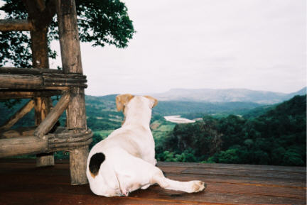 Notre ami Robinson sur la terrasse du Jungle Monckey.